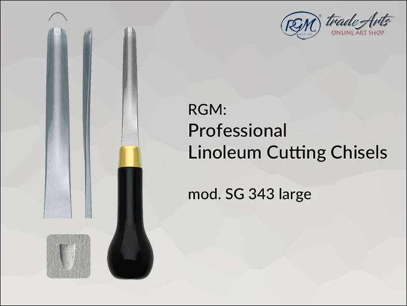 Seria bardzo precyzyjnych dłut linorytowych znanej włoskiej firmy RGM. Dłuto idealne do pracy w linoleum, także w drewnie. Wykonane z najwyższej jakości stali utwardzonej, zamocowane w uchwycie z włókna szklanego i zabezpieczone mosiężną skuwką.