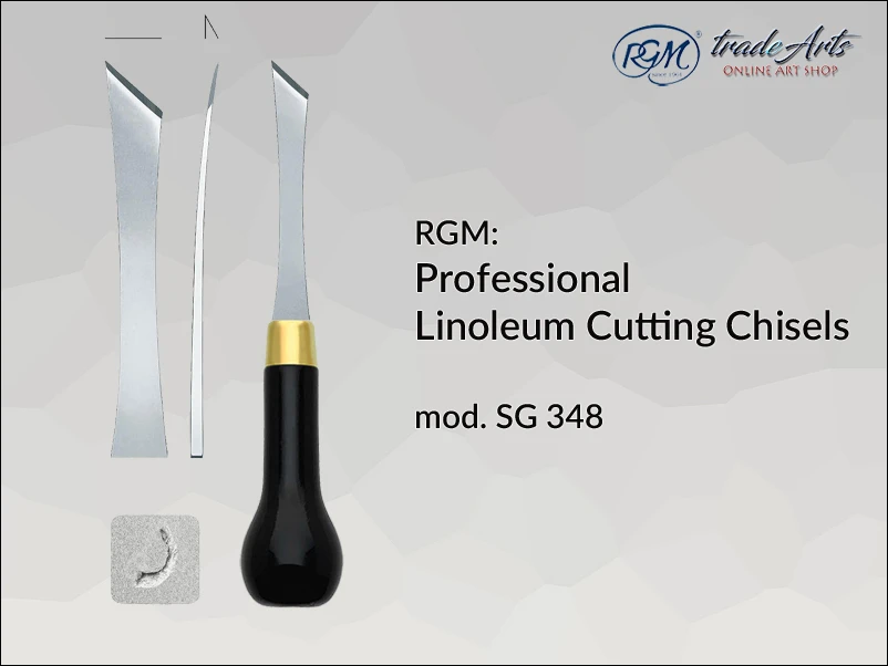 Seria bardzo precyzyjnych dłut linorytowych znanej włoskiej firmy RGM. Dłuto idealne do pracy w linoleum, także w drewnie. Wykonane z najwyższej jakości stali utwardzonej, zamocowane w uchwycie z włókna szklanego i zabezpieczone mosiężną skuwką.