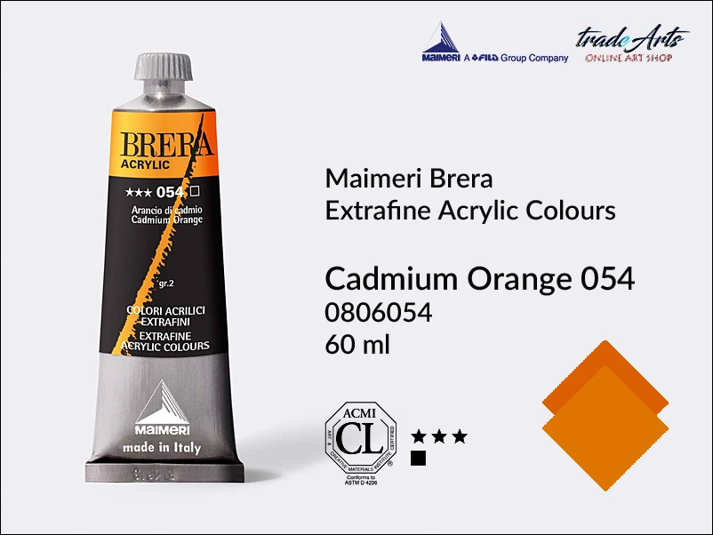 Farba akrylowa Maimeri Brera Acrylic, kolor: Cadmium Orange 054, tuba 60 ml