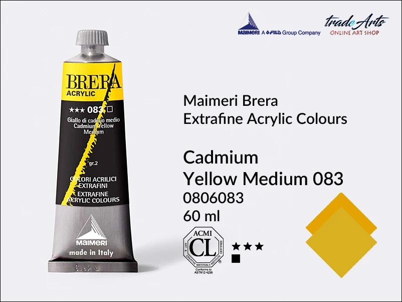 Farba akrylowa Maimeri Brera Acrylic, kolor: Cadmium Yellow Medium 083, tuba 60 ml