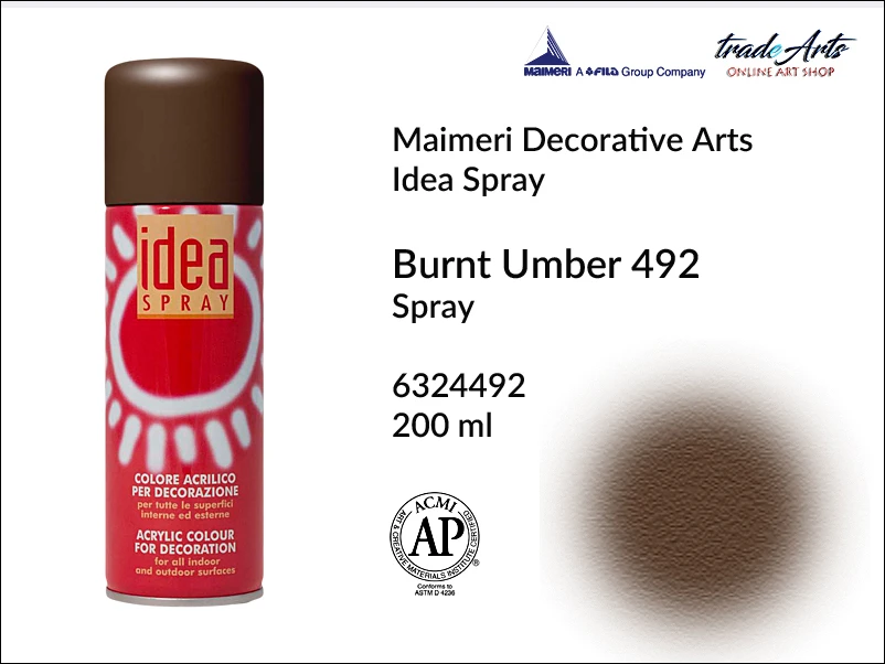 Farba akrylowa Idea Spray: Burnt Umber 492 jest kryjąca i całkowicie światłoodporna.