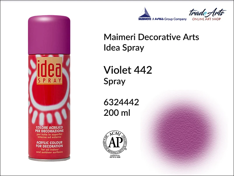 Farba akrylowa Idea Spray: Violet 442 jest kryjąca i całkowicie światłoodporna.
