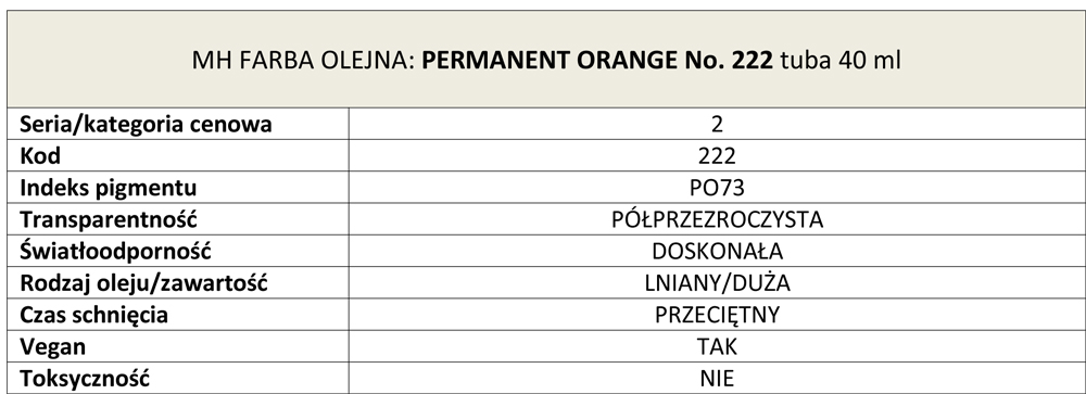Farba olejna Artists Oil Colour Michael Harding, kolor: Permanent Orange No. 222, tuba 40 ml