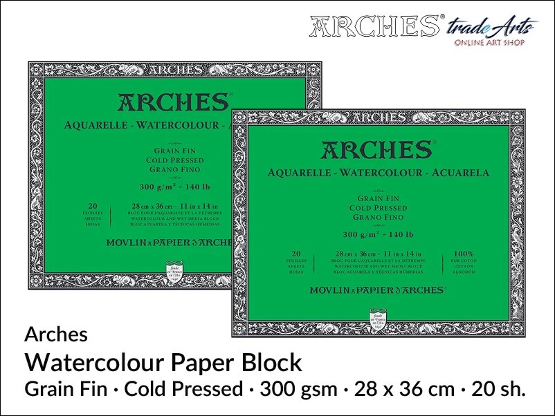 Arches Aquarelle blok akwarelowy drobnoziarnisty prasowany na zimno, 300 gsm, 28 x36 cm, 20 ark.