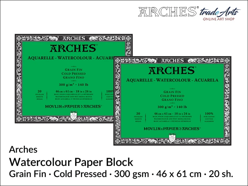 Arches Aquarelle blok akwarelowy drobnoziarnisty prasowany na zimno, 300 gsm, 46 x61 cm, 20 ark.