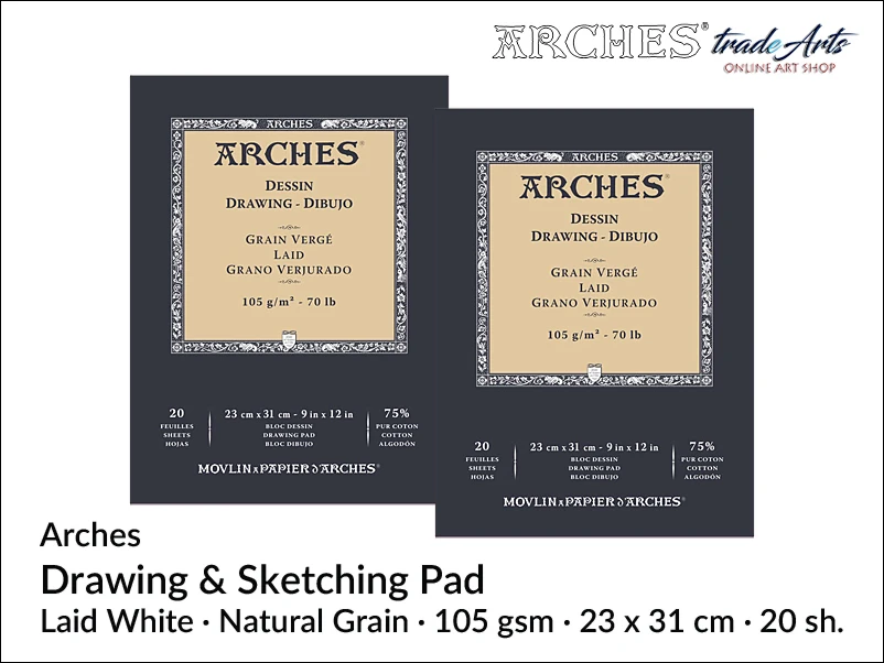 Arches Drawing & Sketching Laid White pad do rysunku i szkicu, 105 gsm, 23 x 31 cm, 20 ark.