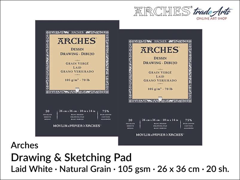 Arches Drawing & Sketching Laid White pad do rysunku i szkicu, 105 gsm, 26 x 36 cm, 20 ark.