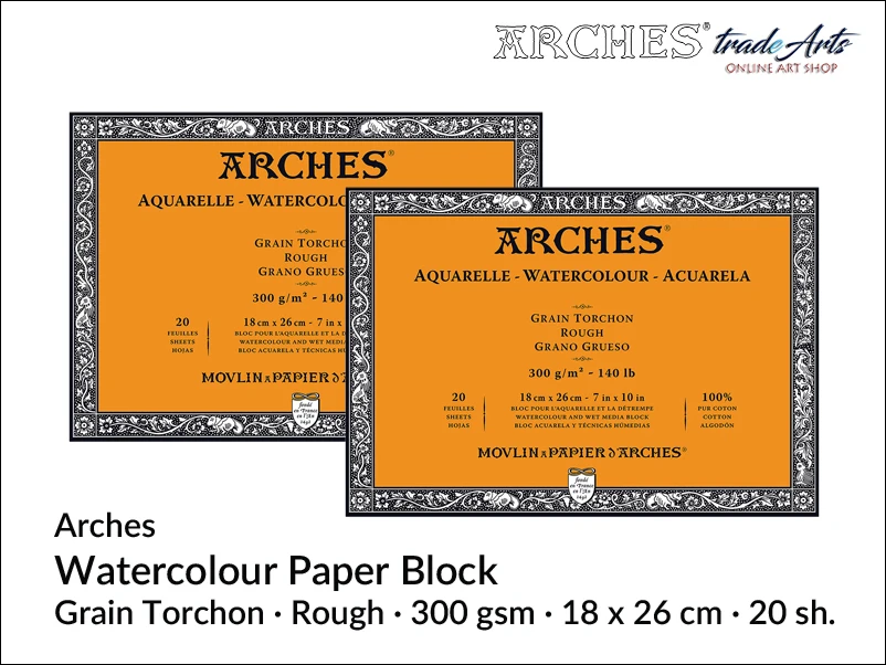 Arches Aquarelle Grain Torchon blok akwarelowy szorstki, 300 gsm, 18 x26 cm, 20 ark.