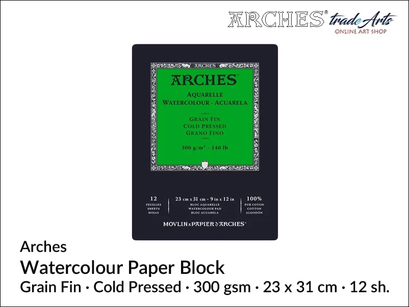 Arches Aquarelle pad akwarelowy drobnoziarnisty prasowany na zimno, 300 gsm, 23 x 31 cm, 12 ark.
