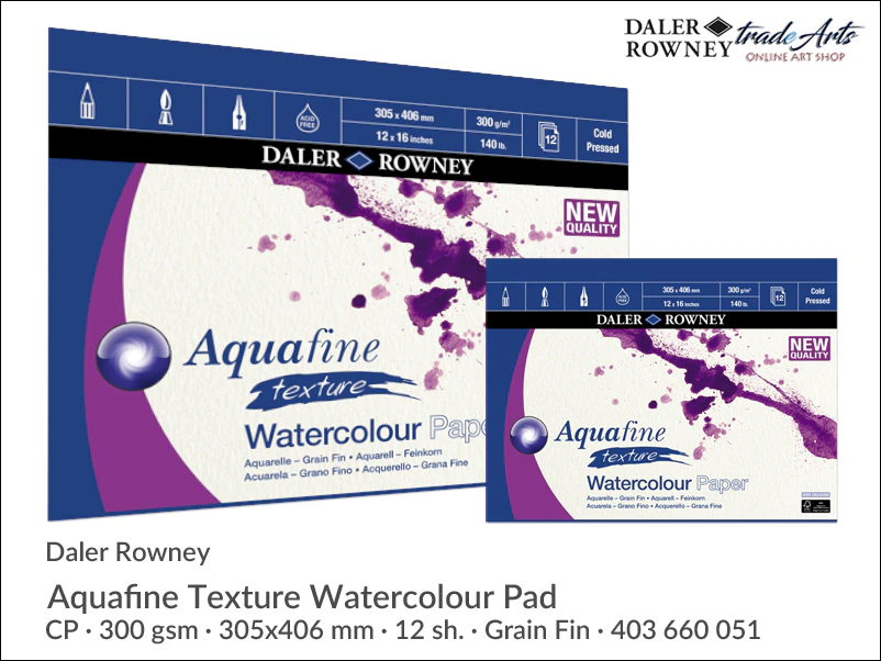 Blok akwarelowy Daler-Rowney Aquafine Texture Watercolour Pad, CP, 300 gsm, 12 ark. 305 x 406 mm
