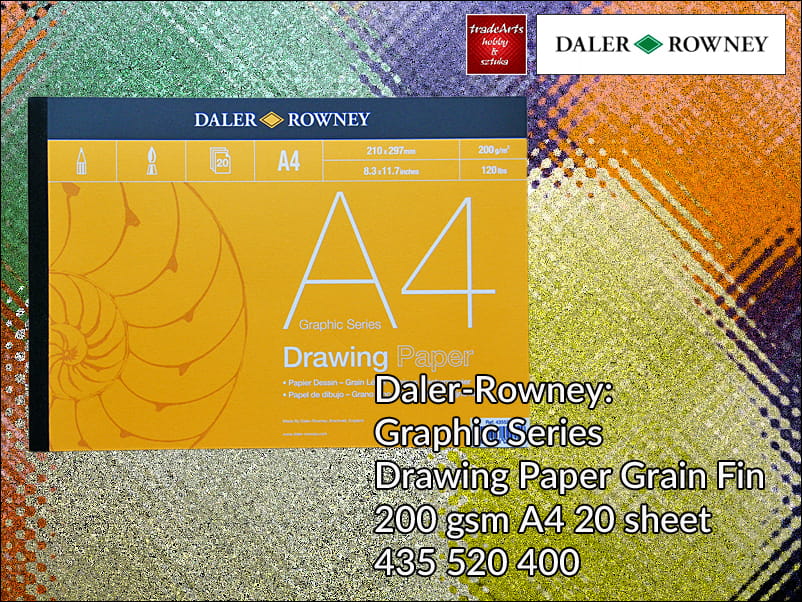 Blok do szkicu i rysunku drobnoziarnisty Drawing Paper Graphic Series Daler-Rowney, format 210 x 297 mm (A4), 20 ark. 200 gsm