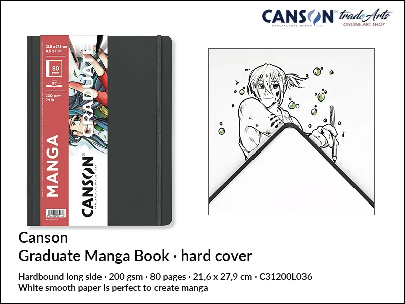 Canson Graduate Manga Book techniki artystyczne, oprawa twarda, gładki 200 gsm, 40 ark. 21,6 x 27,9 cm
