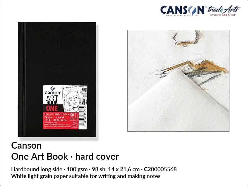 Canson One Art Book do rysunku, oprawa twarda, drobnoziarnisty Light Grain 100 gsm, 98 ark. 14 x 21,6 cm