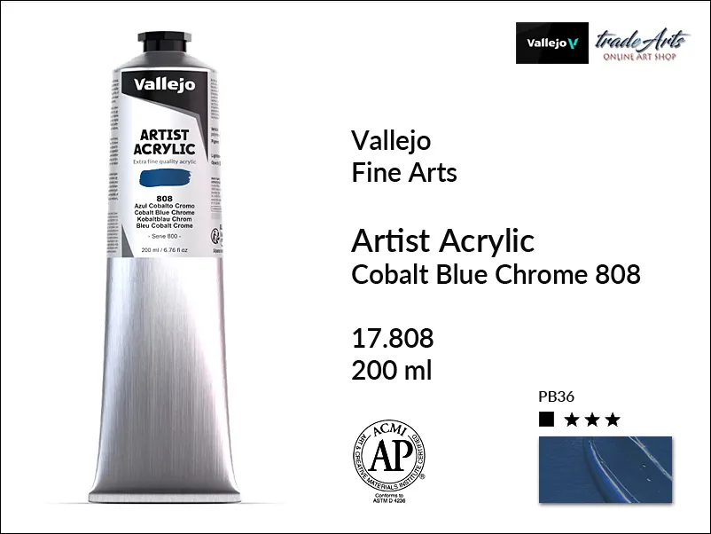 Farba akrylowa Vallejo Acrylic Artist Color, kolor: Cobalt Blue Chrome 808, tuba 200 ml