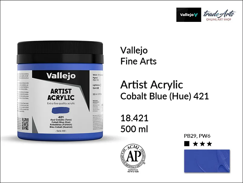 Farba akrylowa Vallejo Acrylic Artist Color, kolor: Cobalt Blue Hue 421, opak. 500 ml
