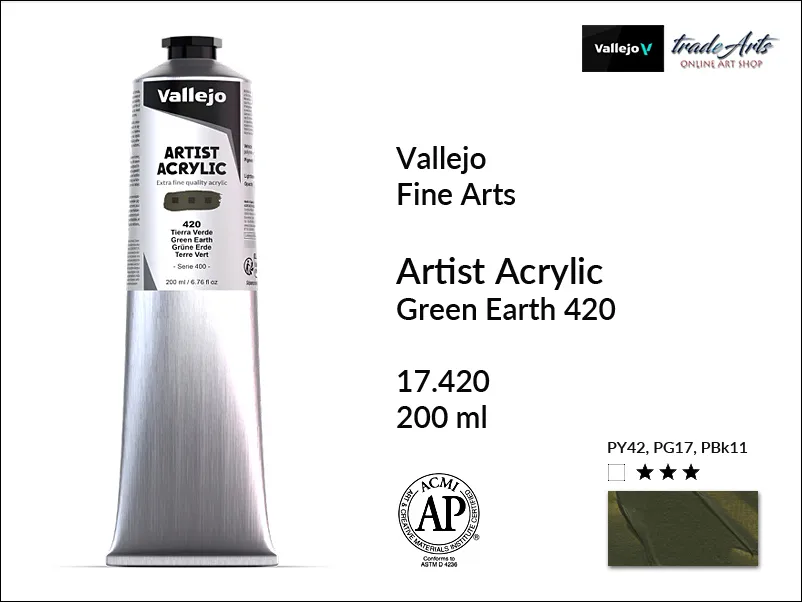 Farba akrylowa Vallejo Acrylic Artist Color, kolor: Green Earth 420, tuba 200 ml