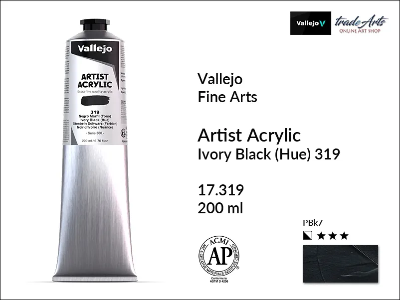 Farba akrylowa Vallejo Acrylic Artist Color, kolor: Ivory Black Hue 319, tuba 200 ml