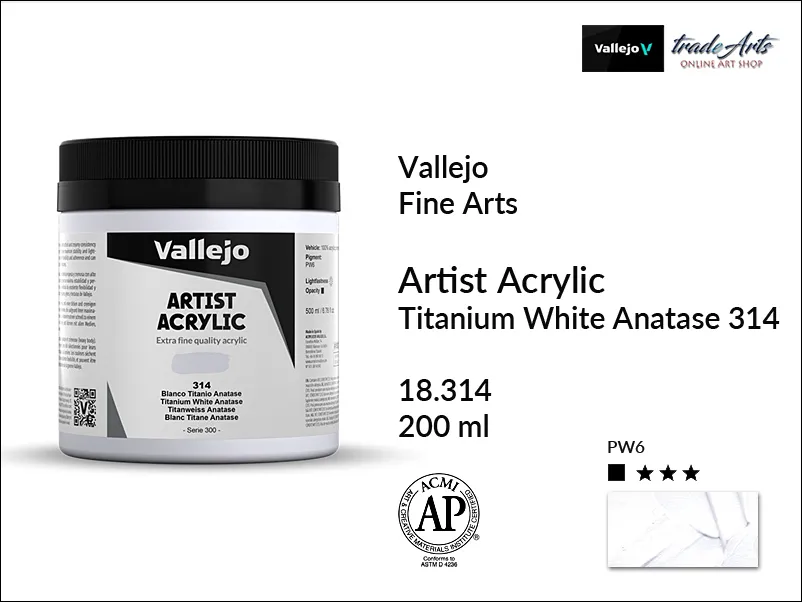 Farba akrylowa Vallejo Acrylic Artist Color, kolor: Titanium White Anatase 314, opak. 500 ml