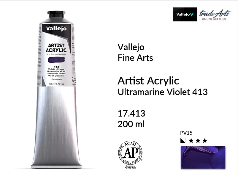 Farba akrylowa Vallejo Acrylic Artist Color, kolor: Ultramarine Violet 413, tuba 200 ml
