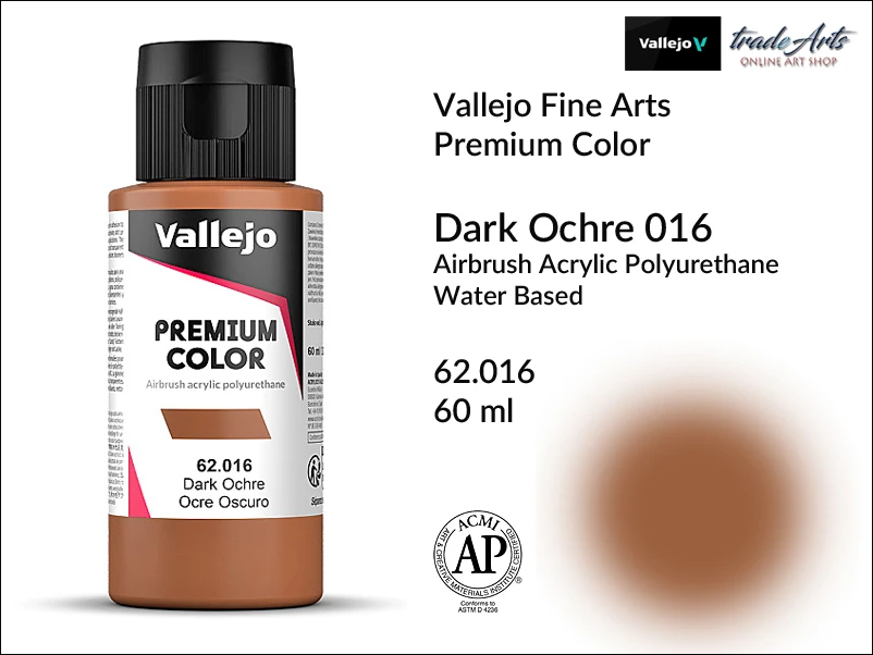 Farba akrylowa do aerografów Vallejo Premium Airbrush Color, kolor: Dark Ochre 016, opak. 60 ml