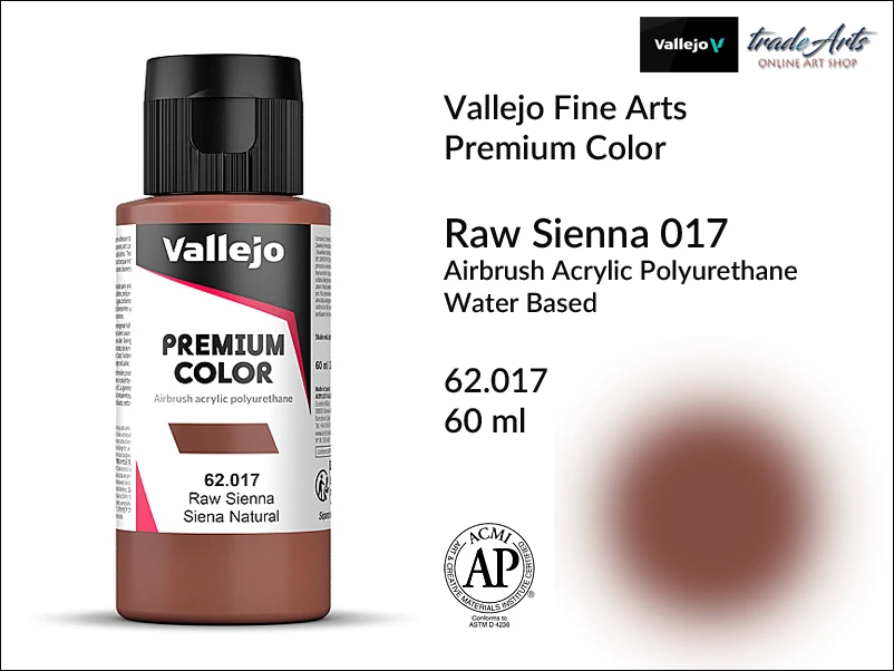 Farba akrylowa do aerografów Vallejo Premium Airbrush Color, kolor: Raw Sienna 017, opak. 60 ml