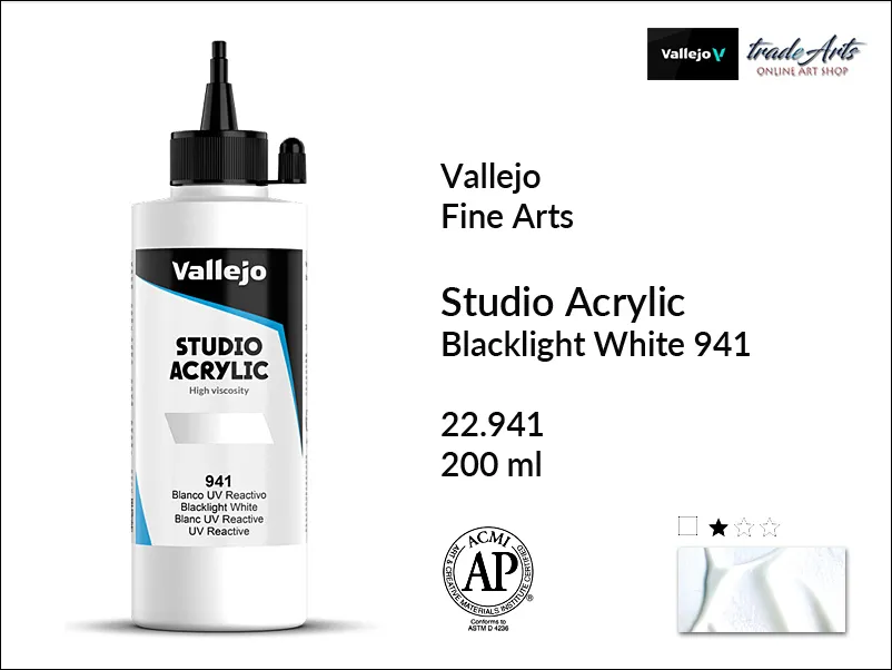 Farba Vallejo Acrylic Studio Blacklight White 941 jest transparentna.