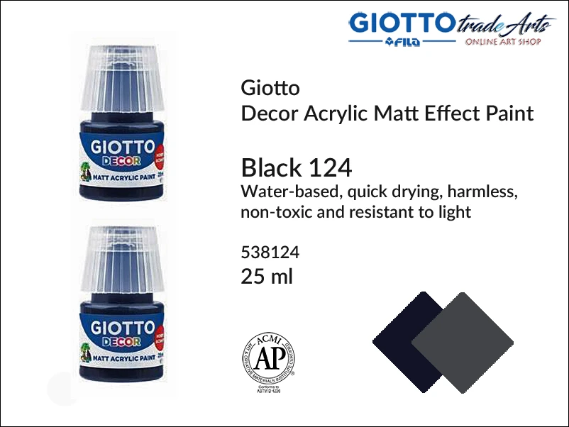Farba akrylowa matowa Giotto Decor Acrylic Matt, kolor: Black 124, opak. 25 ml