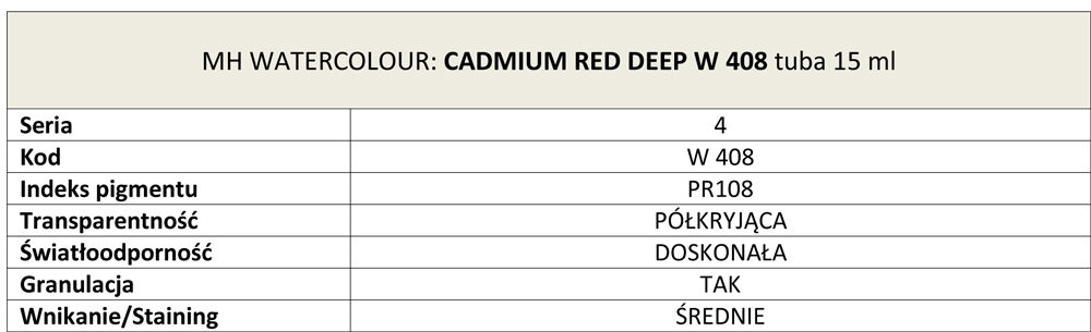 Farba akwarelowa Artists Watercolours Michael Harding, kolor: Cadmium Red Deep W 408, tuba 15 ml