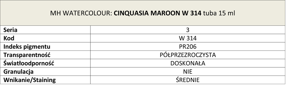 Farba akwarelowa Artists Watercolours Michael Harding, kolor: Cinquasia Maroon W 314, tuba 15 ml