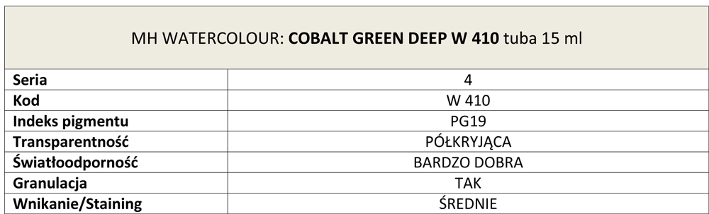 Farba akwarelowa Artists Watercolours Michael Harding, kolor: Cobalt Green Deep W 410, tuba 15 ml
