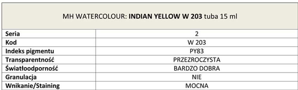 Farba akwarelowa Artists Watercolours Michael Harding, kolor: Indian Yellow W 203, tuba 15 ml