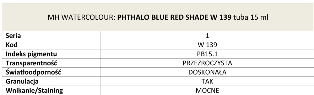 Farba akwarelowa Artists Watercolours Michael Harding, kolor: Phthalo Blue Red Shade W 139, tuba 15 ml
