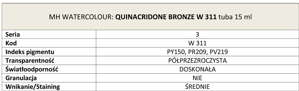 Farba akwarelowa Artists Watercolours Michael Harding, kolor: Quinacridone Bronze W 311, tuba 15 ml