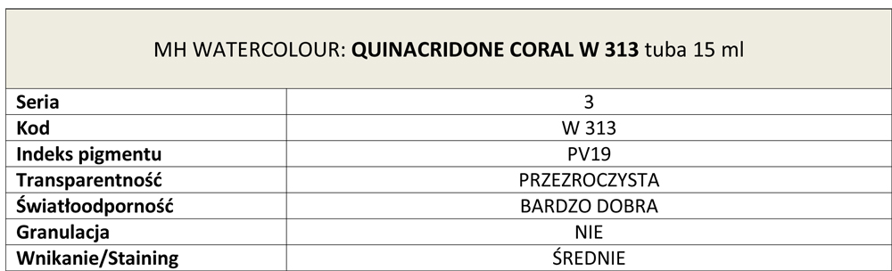 Farba akwarelowa Artists Watercolours Michael Harding, kolor: Quinacridone Coral W 313, tuba 15 ml