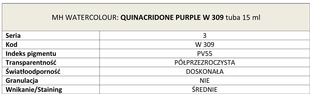 Farba akwarelowa Artists Watercolours Michael Harding, kolor: Quinacridone Purple W 309, tuba 15 ml