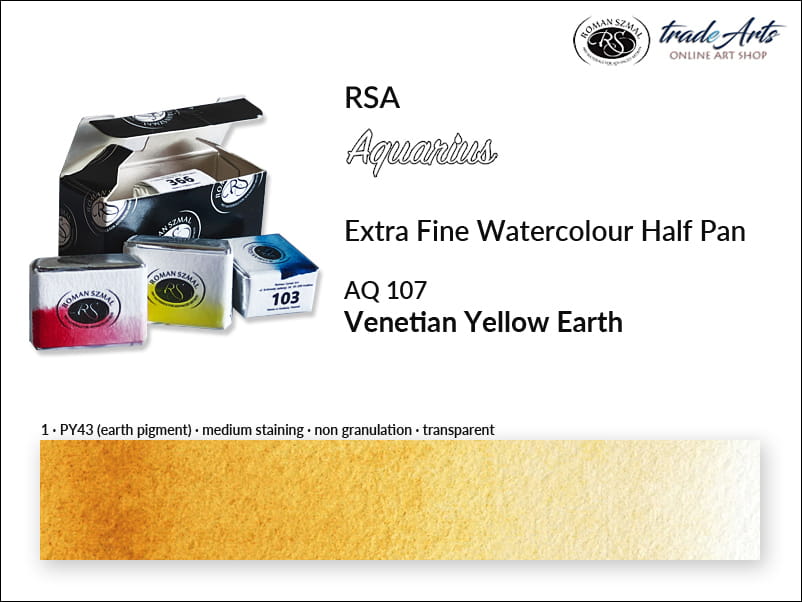 Farba akwarelowa pełna kostka Aquarius Half Pan RSA, kolor: Venetian Yellow Earth 107