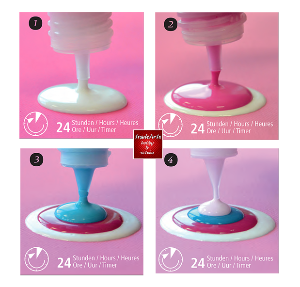Farbę należy nakładać na gładkie, zagruntowane powierzchnie; gruntowanie gesso lub farba akrylową, kolor dowolny lecz czysty i gładki, aby krople uzyskiwały okrągły kształt. Każda kolejna nakładana warstwa kropli musi wysychać co najmniej 24 godziny (im krople większe - tym dłużej). Dolna kropla musi być zupełnie sucha. Przed użyciem dobrze wstrząsnąć zawartością opakowania. Wycisnąć farbę z pionowo trzymanej butelki (nad płaskim podłożem) aż do uzyskania odpowiedniej wielkości kropli. Pozostawić do całkowitego wyschnięcia (24 godziny) przed nałożeniem kolejnej.
