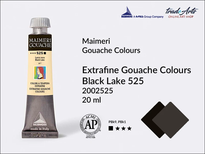 Gwasze Gouache Extrafine Maimeri to wysokiej jakości pigmenty zmieszane z gumą arabską i wypełniaczem. Stworzono stabilne, niepowtarzalne kolory. Po wyschnięciu pigmenty nabierają satynowego, perłowego wyglądu. To farby kryjące (nieprzezroczyste) o doskonałej lub bardzo dobrej światłoodporności.