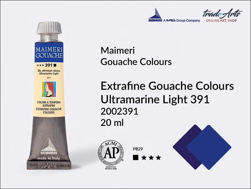 Farba gwaszowa Maimeri Gouache Extrafine, kolor: Ultramarine Light 391, tuba 20 ml