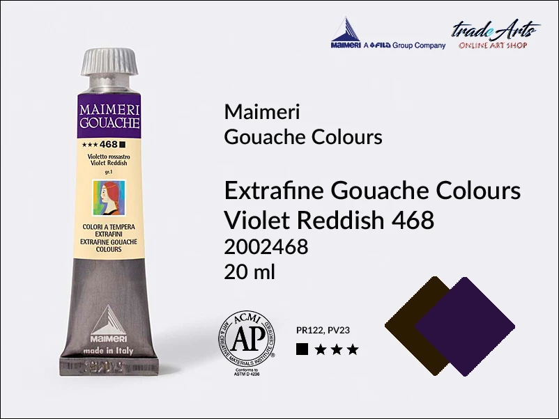 Farba gwaszowa Maimeri Gouache Extrafine, kolor: Violet Reddish 468, tuba 20 ml