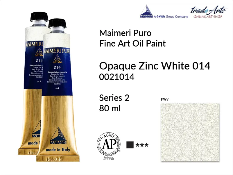 Farba olejna Maimeri Puro Oil Paint, kolor: Opaque Zinc White 014, tuba 80 ml