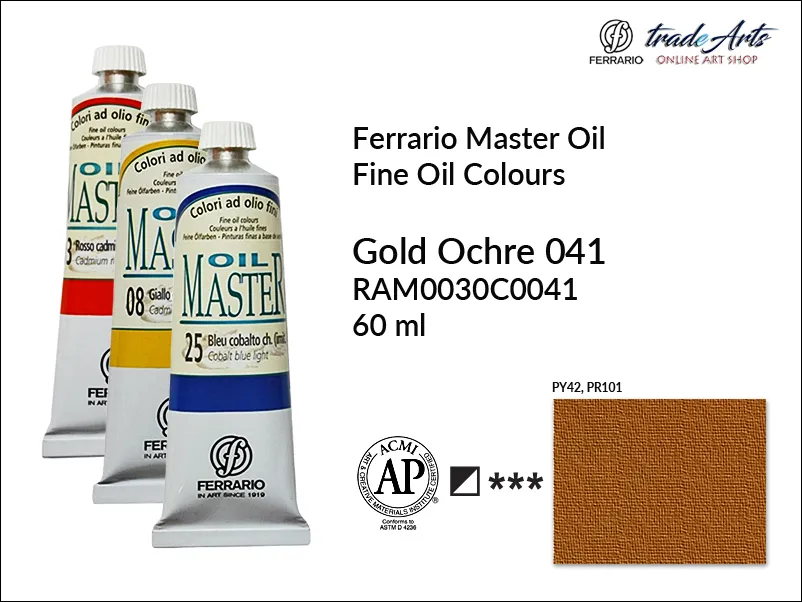Farba olejna Oil Master Ferrario, kolor: Gold Ochre 041, tuba 60 ml