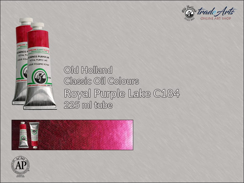 Farba olejna: Royal Purple Lake C184 jest półkryjąca, zawiera pigment: Quinacridone, światłoodporność wg ASTM kategoria 1 i 2.