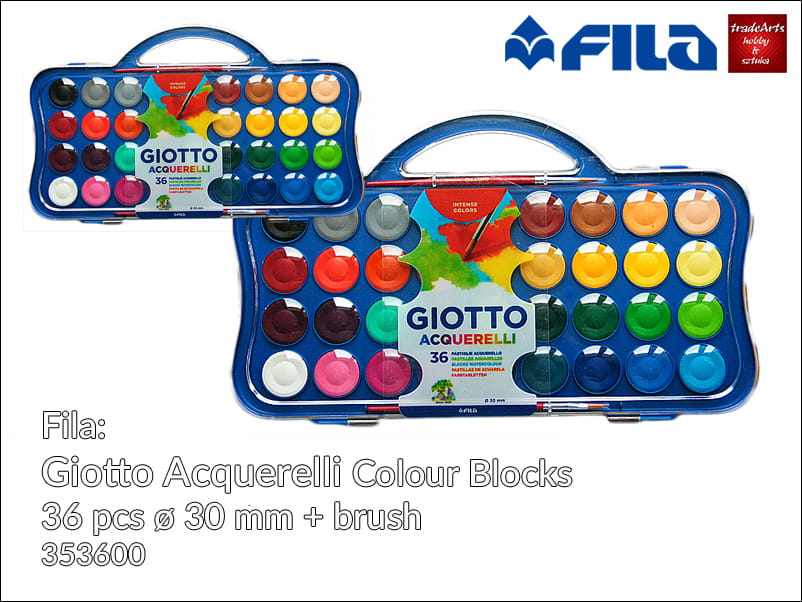 Farby akwarelowe Giotto Acquerelli, opak. 36 pastylek + pędzelek