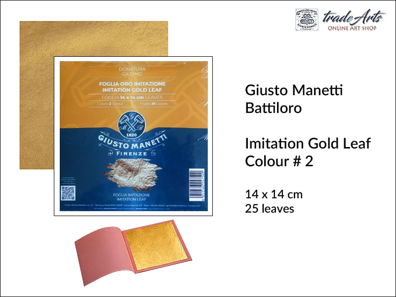 Imitacja złota w płatkach (szlagmetal) Imitation Gold Leaf Manetti, kolor: 2, koperta - ks. 25 płatków 14x14 cm