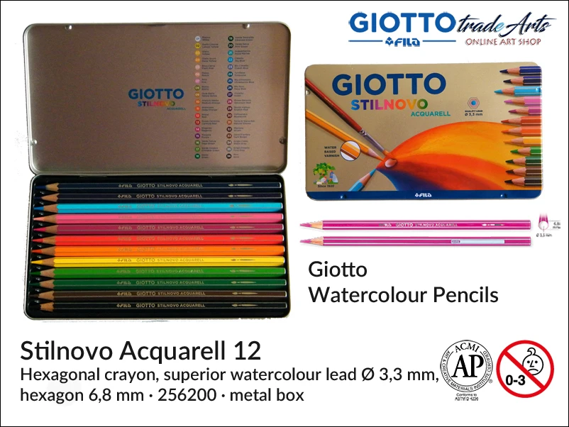 Kredki akwarelowe Giotto Stilnovo Acquarell, opak. 12 szt. kaseta metalowa