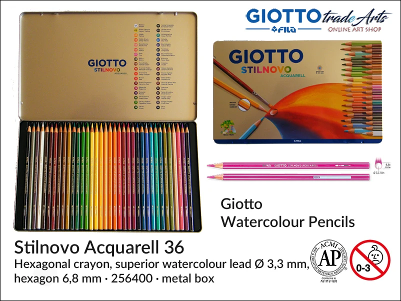 Kredki akwarelowe Giotto Stilnovo Acquarell, opak. 36 szt. kaseta metalowa