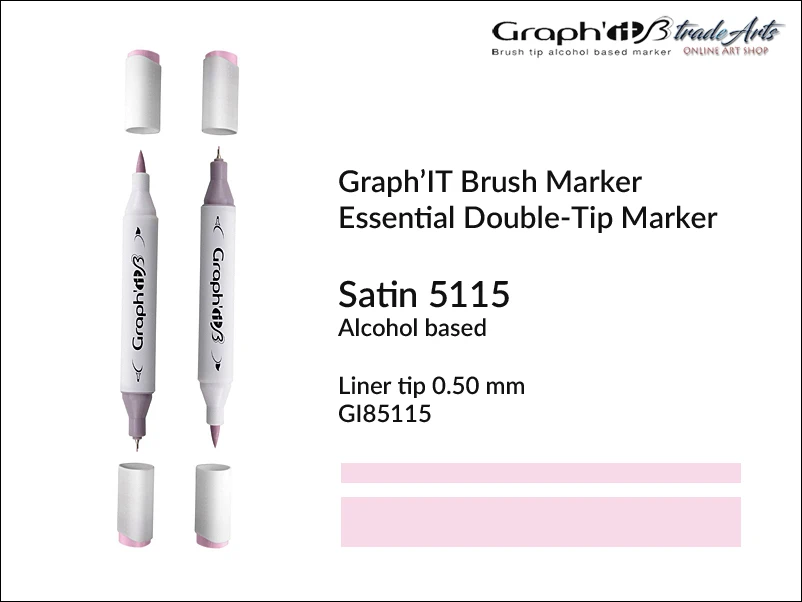 Nowa generacja markerów alkoholowych Graph'it (Oz International). Markery z podwójną końcówką - jedna o średnicy 0,5 mm do zaznaczania konturów, detali i precyzyjnych szczegółów - druga - miękka i elastyczna do wypełniania większych powierzchni. Tusz wysycha bardzo szybko. Zastosowanie: zwłaszcza na grubszym papierze, kartonie. Markery dla artystów, plastyków i hobbystów (scrapbooking i in.).