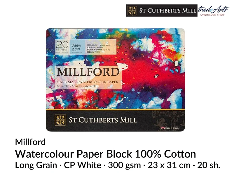Millford Watercolour Paper Block blok akwarelowy, Cold Pressed White, 300 gsm, 20 ark. rozmiar: 23 x 31 cm