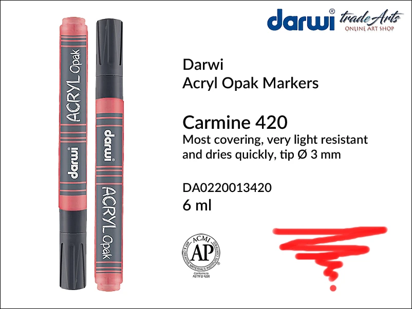Pisak akrylowy, farba akrylowa kryjąca w pisaku Darwi Acryl Opak, kolor: Carmine 420